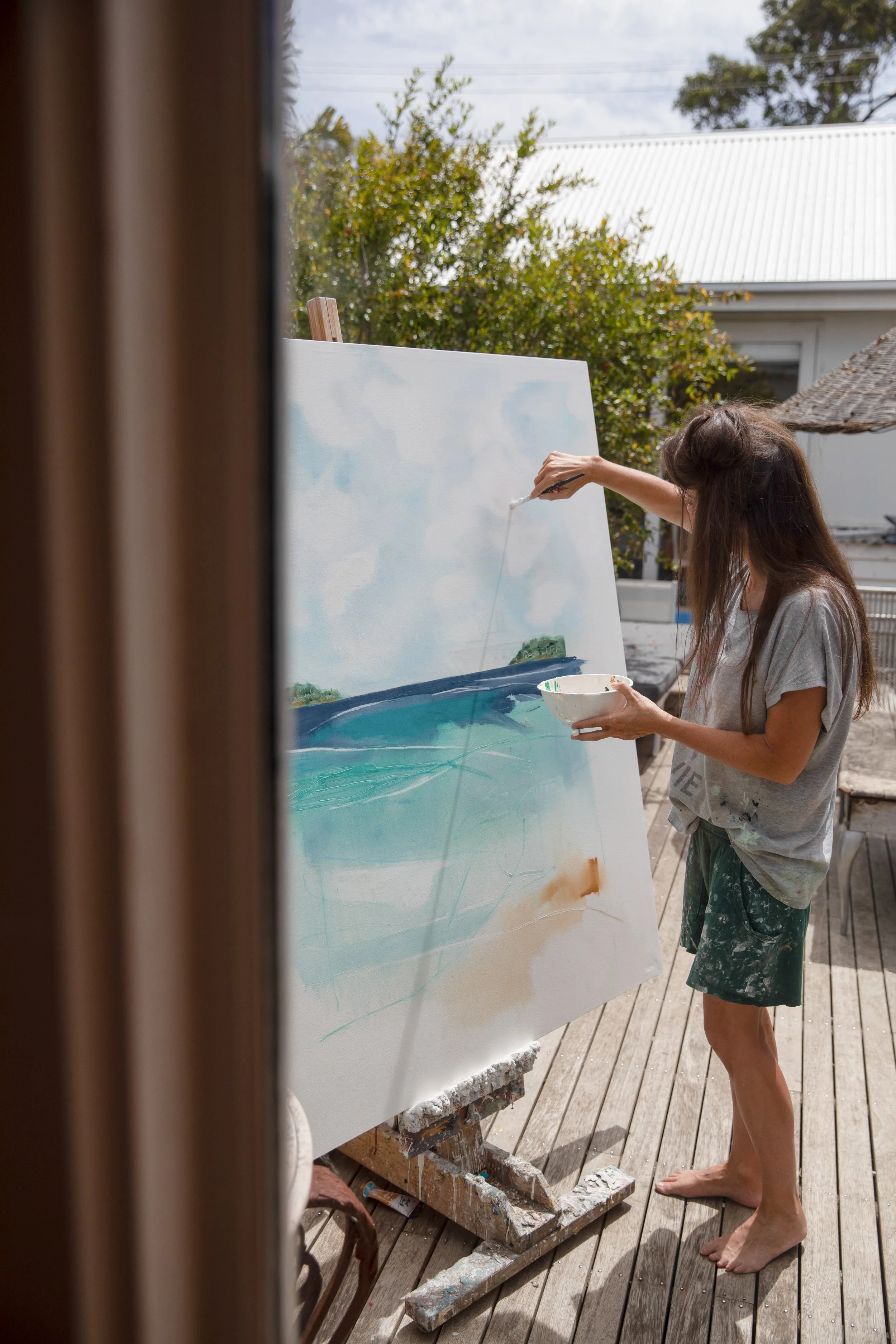 My work is intuitive I rarely plan it out before putting paint to canvas. Majority of my work is commission pieces, its often the perfect marriage for the client to have a piece made to measure providing the best scale, style & color palette for their home. For other clients they see a piece on Instagram or in a store and just know it makes their heart sing another great way to buy art as it will always work in your space if you know you love it.